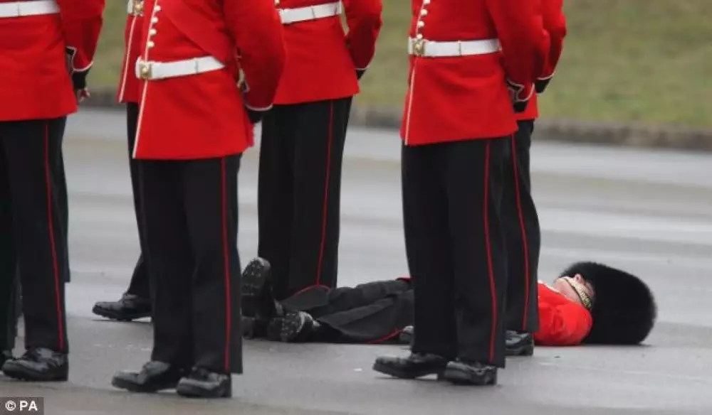 Солдаты смогли самостоятельно покинуть плац без помощи приготовленных для таких случаев носилок. "Медвежья шапка весит больше 3 килограмм, - сказал в оправдание обмороков военных капитан ирландской гвардии Эд Роффе-Сильвестер. - Даже при небольшом ветре головной убор сильно давит и перекрывает доступ кислорода к мозгу. Поэтому гвардейцы потеряли сознание".