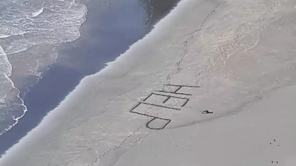"Надпись на песке не видно с пешеходных дорожек в северной части залива Мерсер-бэй, поэтому ему очень повезло, что кто-то проходил мимо и смог его увидеть", - сказал Свонникс.