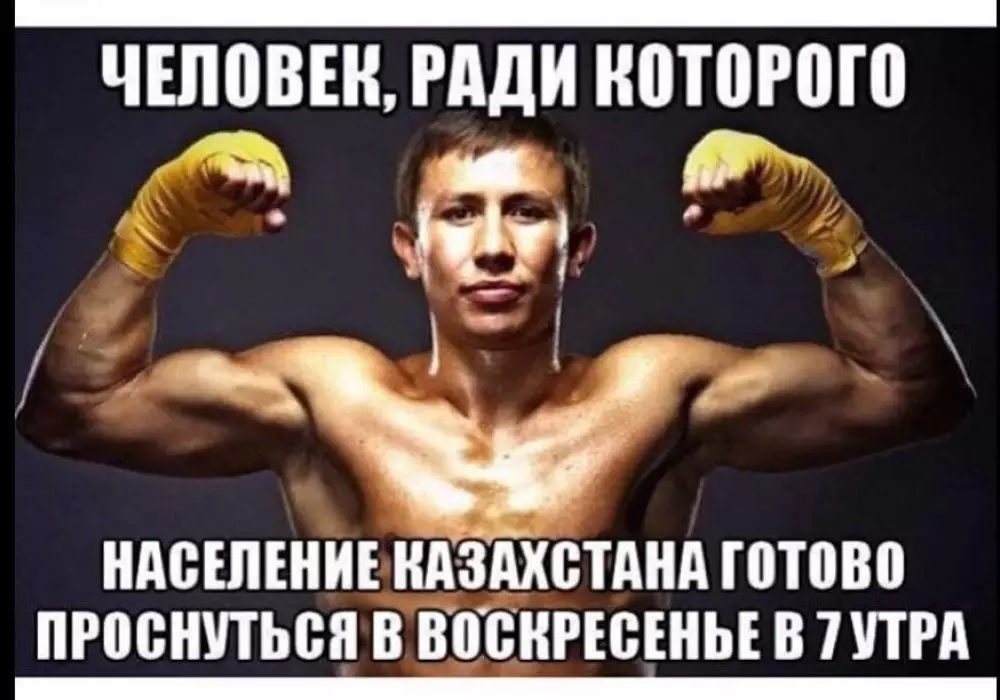 Самыми популярными стали шутки о том, что только Головкин может заставить казахстанцев проснуться в семь утра в воскресенье, и анекдот: "Геннадий Головкин ловит такси 17-го вечером на свой бой, подъезжает к Madison Square и говорит таксисту - Брат, подожди меня здесь минут 5-6...".