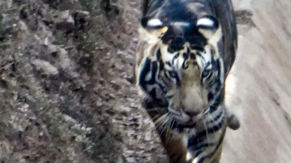 Тигр был сфотографирован в восточной части Одиши, Индия. Черные полосы на его теле расположены так близко друг к другу, что цвет фона едва виден между ними. Ранее подобный тигр был запечатлен лишь однажды, но изображение было утеряно.