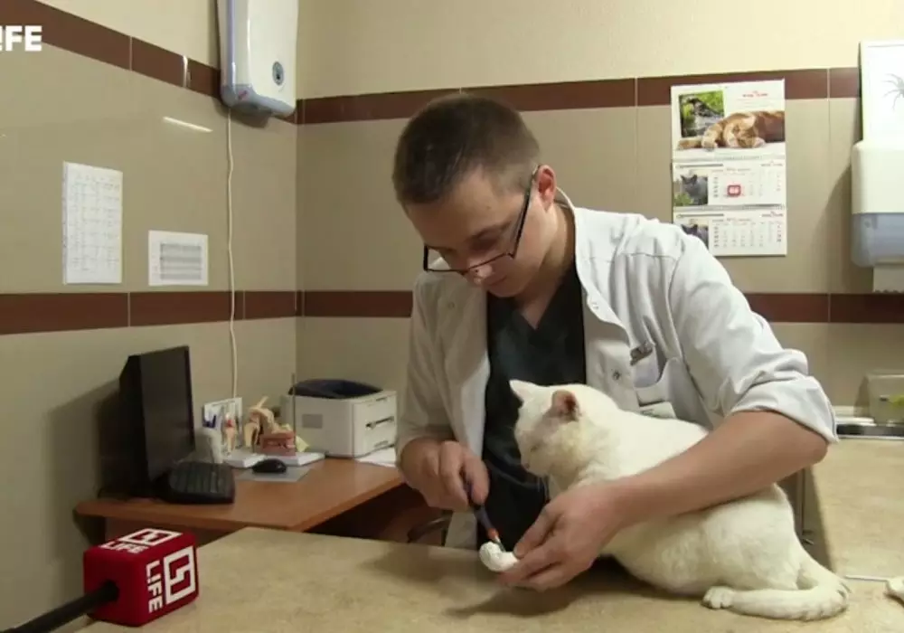Российские ветеринары вживят коту из Казахстана 3D-лапы Ветеринарный врач работает с протезом. Кадр из видео LifeNews