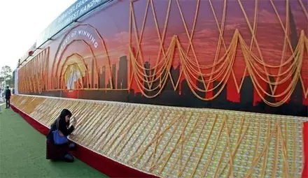 Отмечается, что создание украшения приурочено к двадцатому по счету Торговому фестивалю в Дубаи, в течение которого покупателям в магазинах и торговых центрах предоставляются скидки до 70 процентов и проводятся розыгрыши призов.