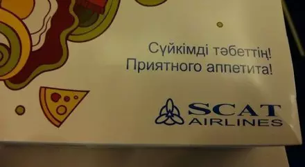Авиакомпания SCAT извинилась за ошибку, допущенную в написании фразы "Приятного аппетита!" на казахском языке, передает корреспондент Tengrinews.kz со ссылкой на пресс-службу авиаперевозчика. На упаковке для бортового питания было написано "Сүйкімді тәбеттің!". Как отметила блогер Айжан Хамит, разместившая фотографию с ошибочной фразой в соцсетях, это переводится как "Миленький аппетит".