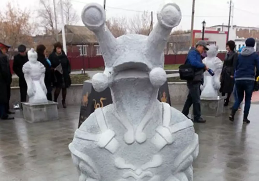 Необычная каменная фигура установлена на аллее молодоженов. Она является частью единого ансамбля, изображающего 12 знаков восточного гороскопа. Скульптура посвященная году Дракона. Однако, по мнению пользователей Казнета, выглядит она довольно необычно - больше похожа на персонажа из фильма "Звездные войны" Джа-Джу Бинкса. Более того, под изваянием имеется табличка, на которой написано на русском языке "Дракон", а на казахском - Ұлу (Улитка).
