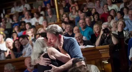 Шнобелевскую премию по медицине вручили за эксперименты с поцелуями Гости церемонии целуются после объявления лауреата Шнобелевской премии по медицине. Фото © REUTERS/Gretchen Ertl