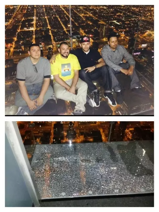 Стеклянный пол треснул под ногами туристов на 103-м этаже За несколько секунд до инцидента братья спокойно фотографировались на память. © nbcchicago.com