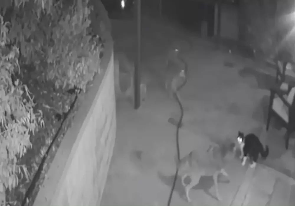 На одной из улиц Лос-Анджелеса на камеру наблюдения попало столкновение кота и трех койотов, сообщает National Geographic.