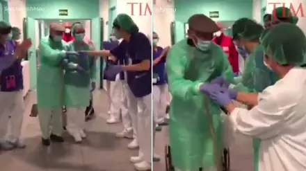 Трогательное видео его выписки опубликовали на странице Time в Twitter. На кадрах видно, как медики провожают бывшего пациента аплодисментами по коридору, приветствуют его возгласами и по очереди жмут руку.