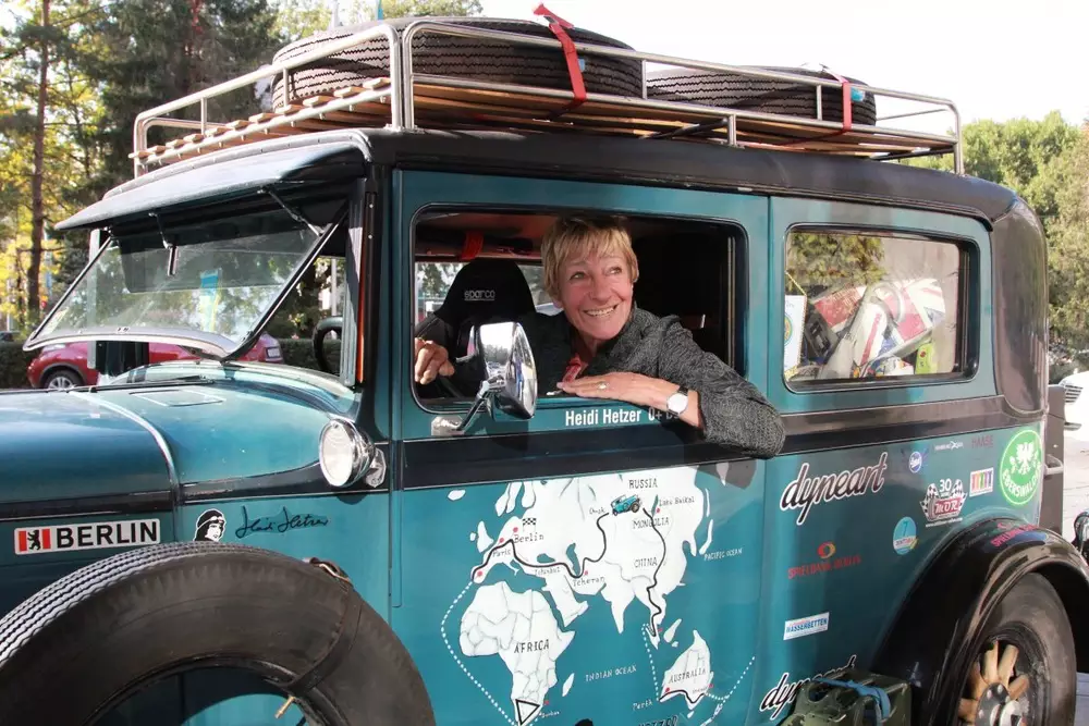 Хайди Хетцер решила повторить подвиг своей соотечественницы Кленоры Стиннес, которая является первой женщиной, совершившей кругосветный автопробег в 1927 году. "Я всегда считала, что это выдающийся поступок, и хотела повторить его. Но все не могла найти на это времени. И вот на старость лет я продала свой бизнес, купила американский Hudson 1930 года, на похожем путешествовала Стиннес, и отправилась в путь. Правда, мой маршрут немного длиннее, примерно 100 тысяч километров. Я хочу посетить все континенты", - рассказала собеседница.