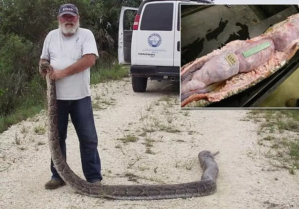 Самка бирманского питона, пойманная в национальном парке Эверглейдс