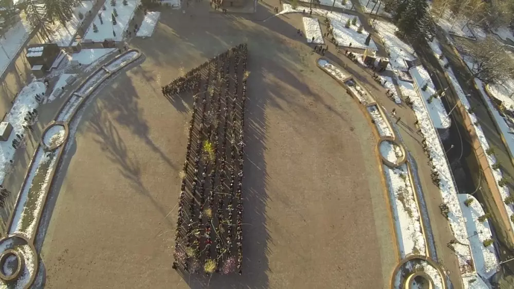 В огромную цифру "1", которая символизирует День Первого Президента, выстроились студенты на площади перед Дворцом Республики в Алматы, передает корреспондент Tengrinews.kz. Флешмоб организовало управление молодежной политики Алматы. По словам начальника управления Санжара Бокаева, участие в акции приняли более тысячи активистов молодежных волонтерских движений и студенческих объединений города. "Во многих странах есть праздник Дня Первого Президента. Он необходим, как второй день единства народа Казахстана. В Алматы мы бросили клич, объяснили, что спонтанно необходимо собраться и образовать цифру "1". Для "галочки" собирать людей неправильно. Если организовывать, то необходимо идеологически правильно наполнять мероприятие. Ребята взяли с собой хлопушки, конфетти и с удовольствием поучаствовали во флешмобе", - пояснил Бокаев. 1 декабря в Казахстане отмечается День Первого Президента. 28 ноября в Астане более трех тысяч студентов массово признавались в любви Главе государства Нурсултану Назарбаеву.