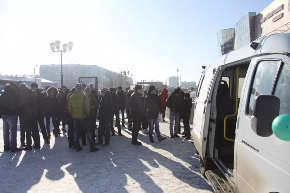 В воскресенье в Уральске состоялся флешмоб, суть которого заключалась в том, чтобы вместить в микроавтобус "ГАЗель" максимальное количество пассажиров, пишет газета "Уральская неделя".