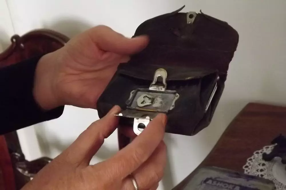 Кожаный кошелек несколько лет назад в их фонд передал краевед Владимир Лушников. И во время последнего пристального изучения экспоната, специалист случайно открыла потайной отсек, находящийся в передней части кошелька. "Она потянула за деталь, и секретное отделение открылось, а там находилась именная печать, на которой написано - Леонид Струков. Мы были поражены и до сих пор не знаем, знал ли об этой загадке сам даритель", - пояснила главный хранитель фондов Татьяна Титаева.