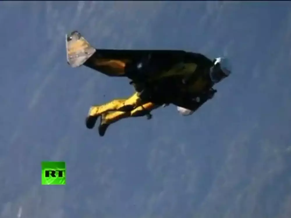 С помощью сконструированного костюма с реактивным крылом мужчина пролетел рядом с двумя истребителями L-39C Albatros над швейцарскими Альпами. На высоту Росси поднялся на вертолете, с которого позже спрыгнул. Полет на высоте 1500 метров продолжался примерно десять минут. За это время "реактивный человек" успел выполнить несколько фигур высшего пилотажа. Весь полет швейцарца фиксировали камеры.