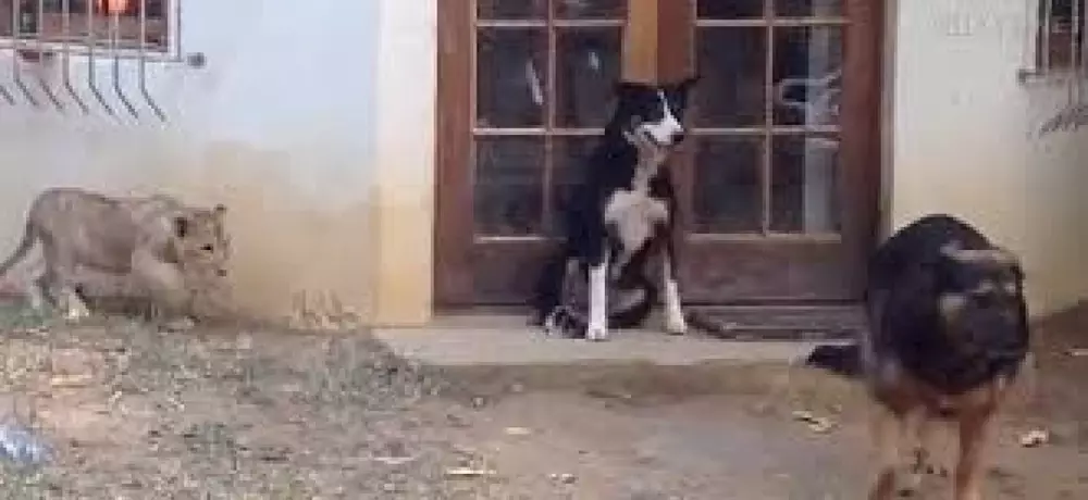 На видео, которое в Сеть 2 августа выложил Шон Свинглер (Shaun Swingler), львенок медленно подкрадывался к собакам. Один из псов, заметив опасность, убежал в сторону. Вторая же собака отвлеклась и не заметила, как хитрый львенок приближается к ней. Повернув голову, пес увидел перед собой львенка и от испуга начал убегать.