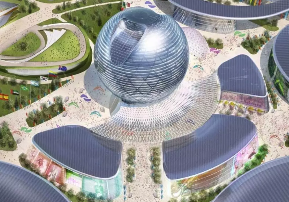 Сфера на международной выставке EXPO-2017 станет архитектурным символом. Гигантский шар займет центральное положение среди объектов выставочного комплекса. Диаметр Сферы - 80 метров, общая площадь восьмиэтажного здания с подземной частью ориентировочно составит 26 тысяч квадратных метров. Оболочка сооружения будет полностью из стекла. В верхней части огромного шара будут расположены два ветрогенератора.