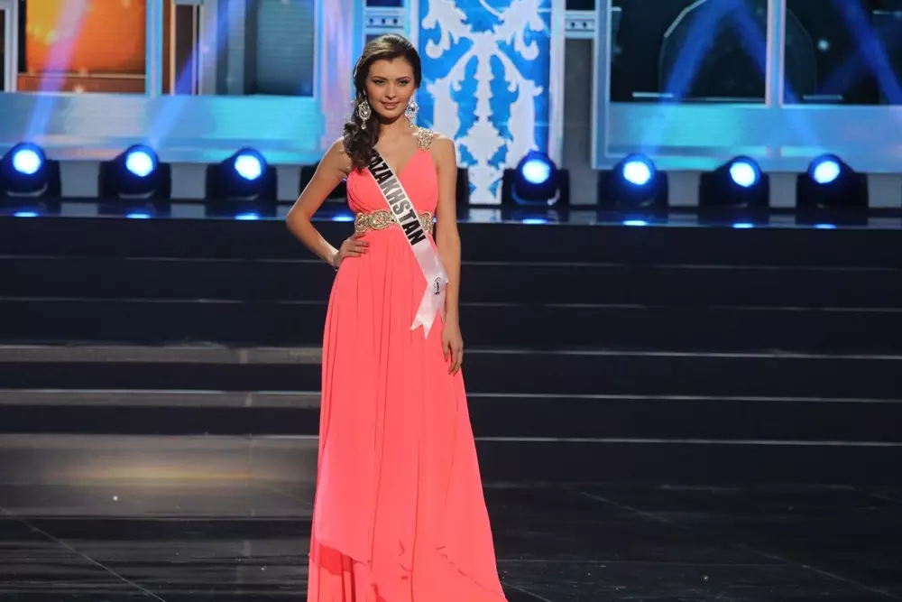 Казахстан на "Мисс Вселенная" представляет 19-летняя Айгерим Кожахан. Она предстала перед жюри и семитысячной публикой в вечернем платье алого цвета. В визитной карточке казахстанки было отмечено, что Айгерим учится по специальности "Туризм", занимается благотворительностью и гордится тем, что является волонтером в организациях по защите животных.