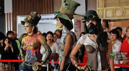 Над конкурсной темой национальных орнаментов другой участнице - Анне Бутузовой - пришлось серьезно поработать. "Каждый орнамент на голове модели в образе батыра имеет свое значение. Процесс меня настолько увлек, что мне попросту не хватило места и волос на голове для самовыражения", - рассказала она.