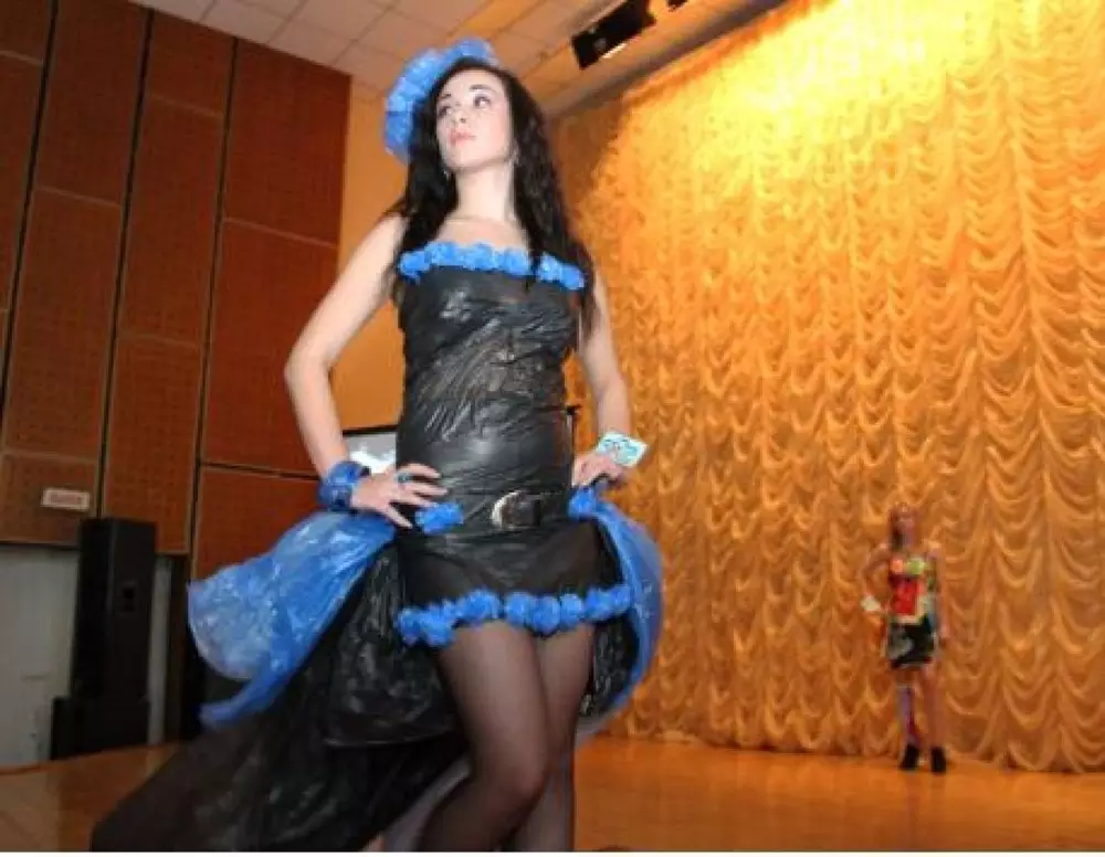 Одна из участниц за несколько дней смастерила оригинальное платье из 200 пар перчаток. Еще одна старшеклассница Олеся Дудник изготовила себе пышное платье из 120 полиэтиленовых пакетов. "Мой наряд оказался самым воздушным. В прямом смысле слова. Подол платья выполнен из надутых пакетов. Смотрится, конечно, зрелищно и масштабно. Но в такой пышной юбке очень сложно ходить, а войти в дверные проемы - вообще проблема. К тому же надутые пакеты имеют неприятное свойство лопаться в самый неподходящий момент", - поделилась девушка.
