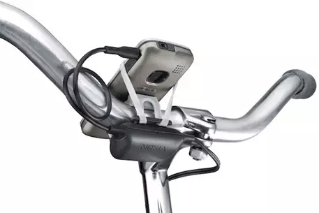 В комплект Nokia Bicycle Charger Kit входит зарядное устройство со стандартным двухмиллиметровым разъемом и крепление для мобильного телефона на велосипедный руль, а также генератор, который вырабатывает электроэнергию от вращения колеса.