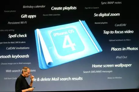 По словам главы Apple, четвертая версия мобильной операционной системы получила более 100 новых возможностей, среди которых создание плей-листов, пятикратный цифровой зум камеры, поддержка Bluetooth-клавиатур, проверка орфографии, подарочные приложения, а также функция смены обоев на "домашнем экране" устройства.