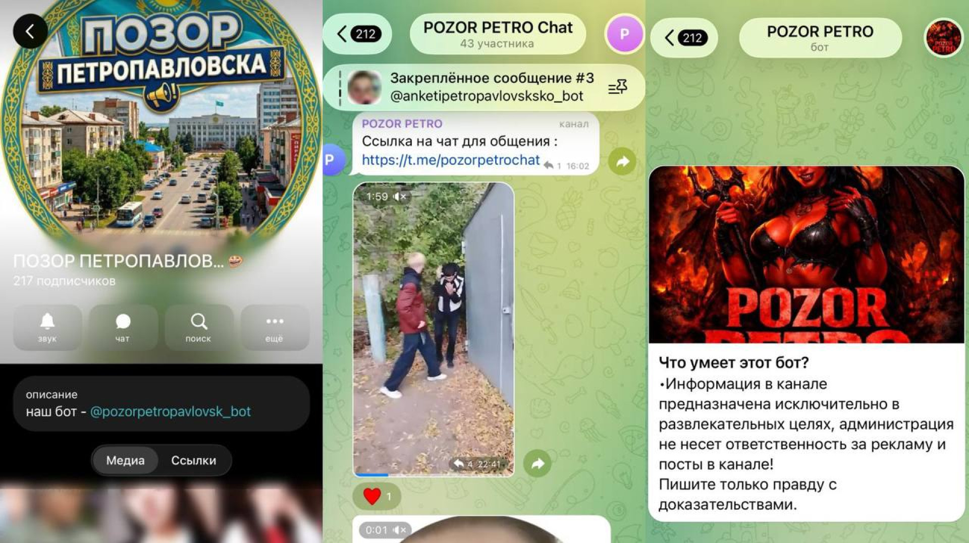 Ситуация с учителями – лишь часть системной проблемы в школах СКО. В регионе продолжают действовать анонимные Telegram-каналы ("Позор", "Срам"), где неизвестные выкладывают компромат уже на школьников: видео драк, употребление алкоголя и даже интимные кадры. Под постами часто звучат прямые призывы к насилию.
