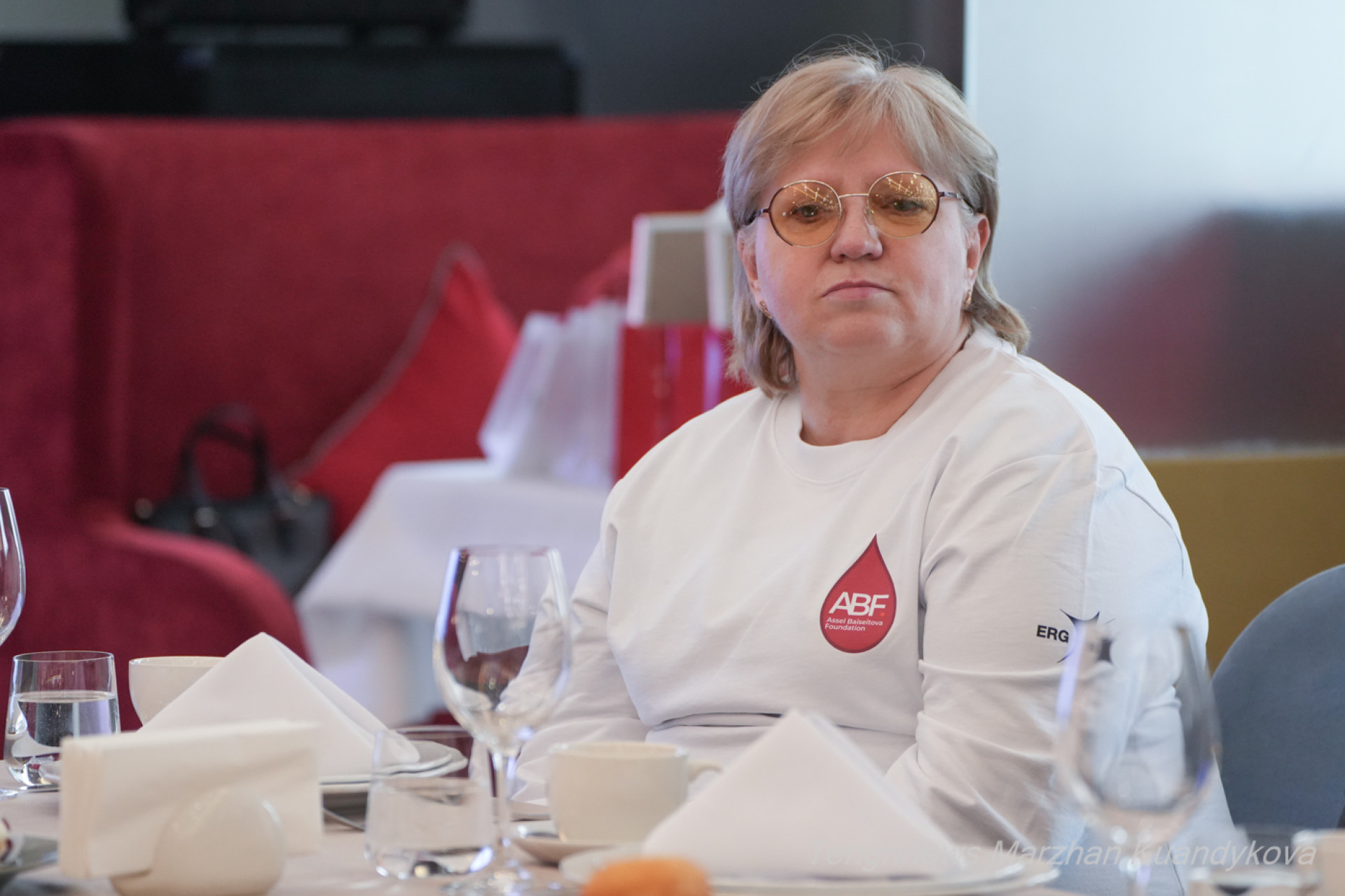 Модерировала происходящее Светлана Селюнина. Она директор общественного фонда имени Асель Байсеитовой, во многом благодаря которому эта встреча и состоялась. В 2021 году Юрий Алёшкин стал донором на одном из мероприятий фонда, который продвигает в Казахстане тему донорства гемопоэтических клеток. Это был осознанный шаг молодого человека.