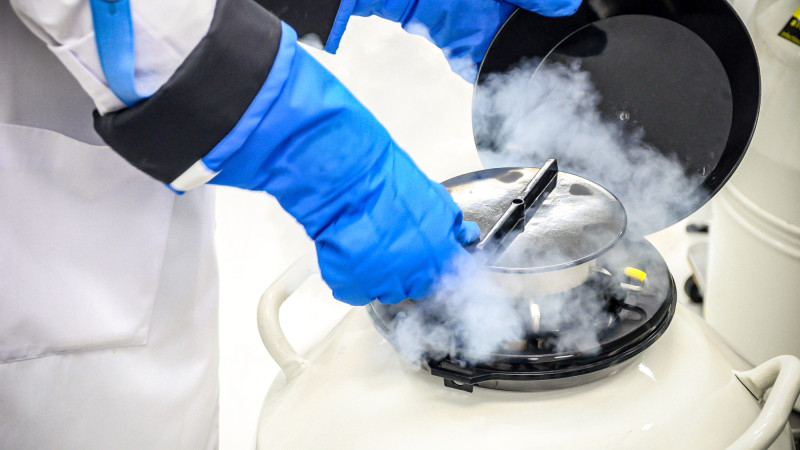 Эмбрионы хранятся в специальных сосудах — дьюарах, в оборудованных криохранилищах при температуре минус 196 градусов. Они подвергаются быстрой заморозке с помощью жидкого азота. Газ "доливают" в баки каждый день, так как он имеет свойство испаряться. Без азота эмбрионы могут погибнуть.
