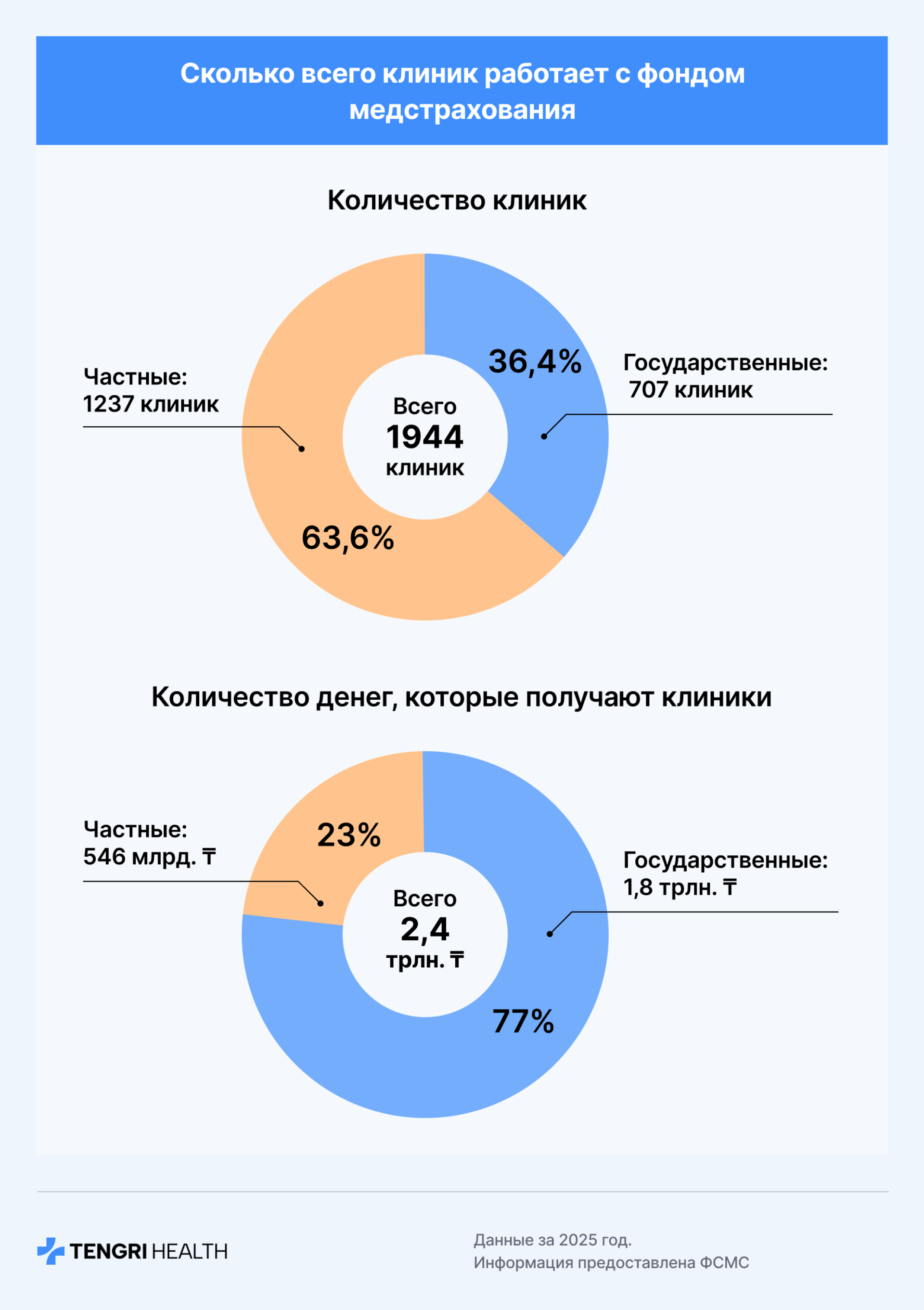 Сколько денег в ФСМС, как они распределяются между частными и госклиниками и сколько казахстанцы платят за здоровье из собственного кармана — в материале TengriHealth.