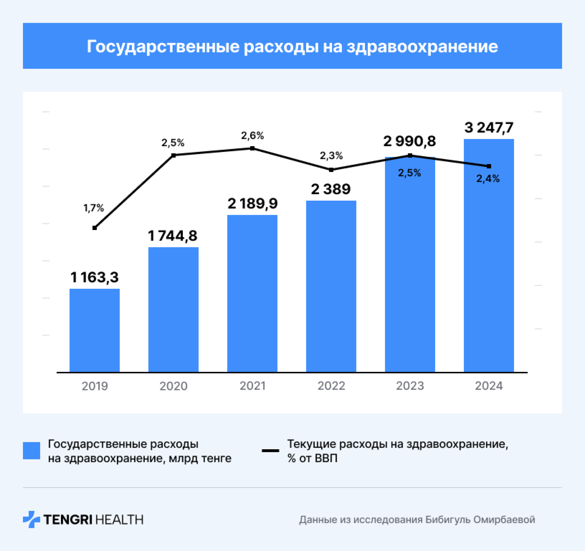 Согласно отчёту главного эксперта Казахстанского института стратегических исследований при Президенте Бибигуль Омирбаевой, госрасходы на здравоохранение действительно растут.