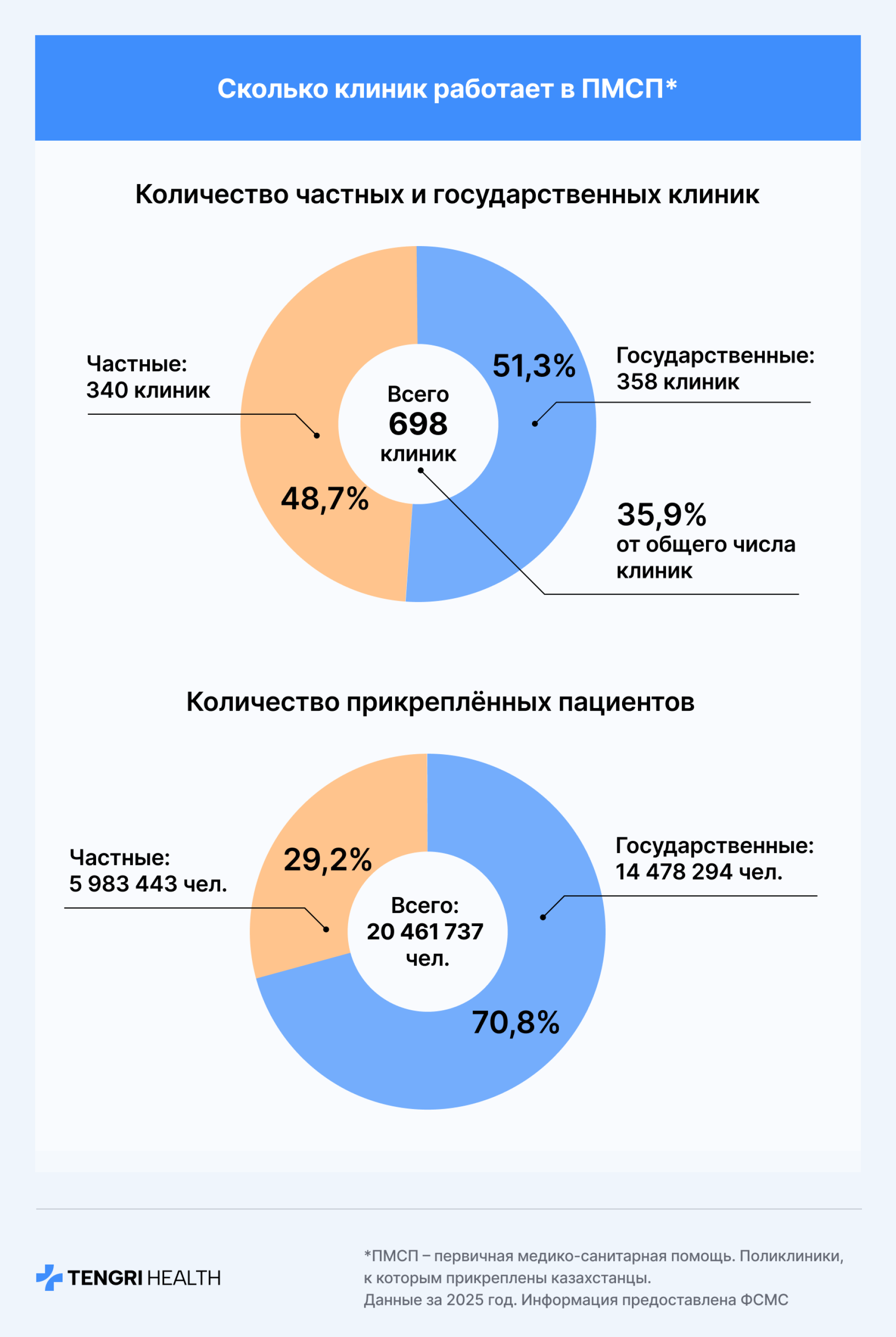 Отдельно нужно сказать о клиниках, которые оказывают услуги в системе первичной медико-санитарной помощи (ПМСП). Это поликлиники, к которым прикреплены и в которые в первую очередь обращаются пациенты — база любой системы здравоохранения.