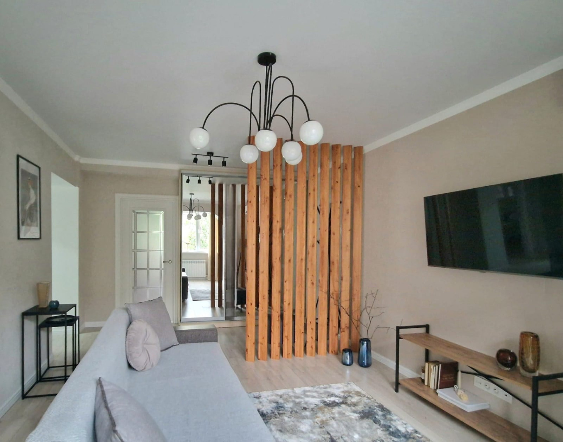 И довольно частый вопрос: что делать с громоздкими стенками-горками? Их, говорит спикер, лучше разбить на несколько частей. Шкаф переместить в спальню, сервант — в кухню, а телетумбу оставить в зале.