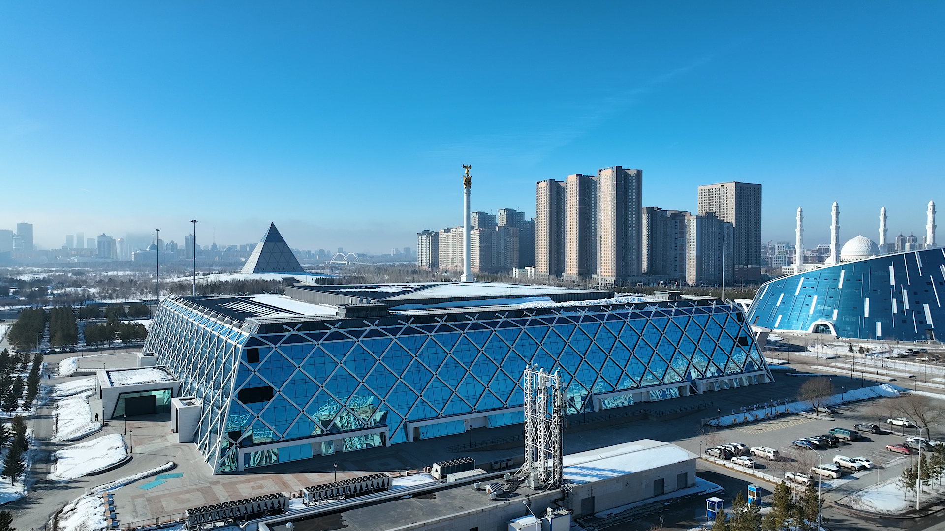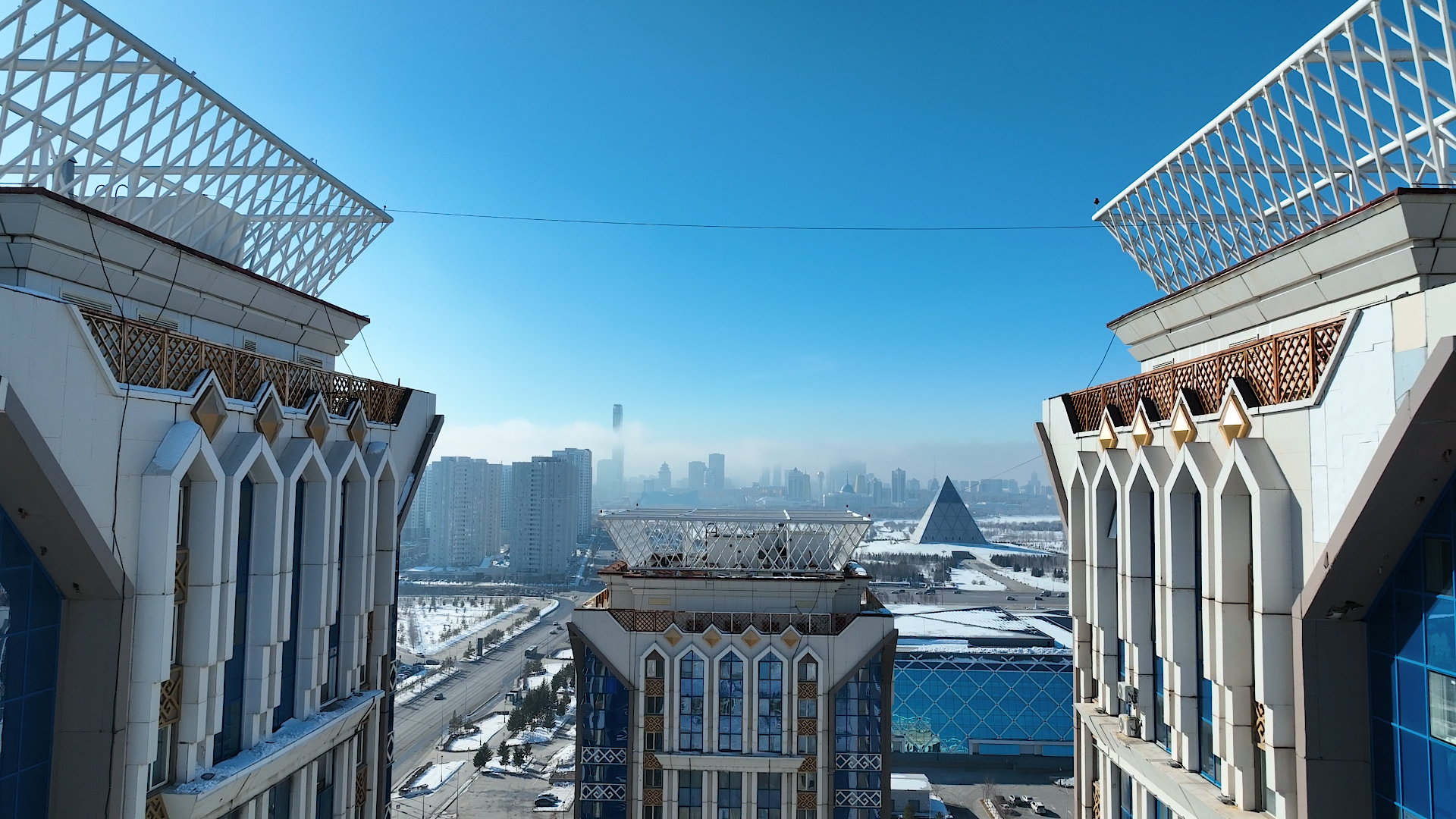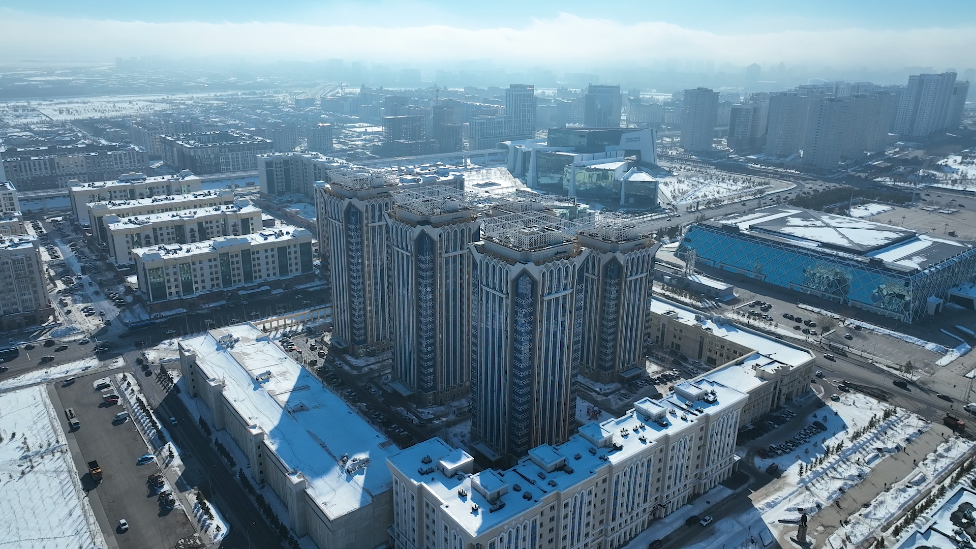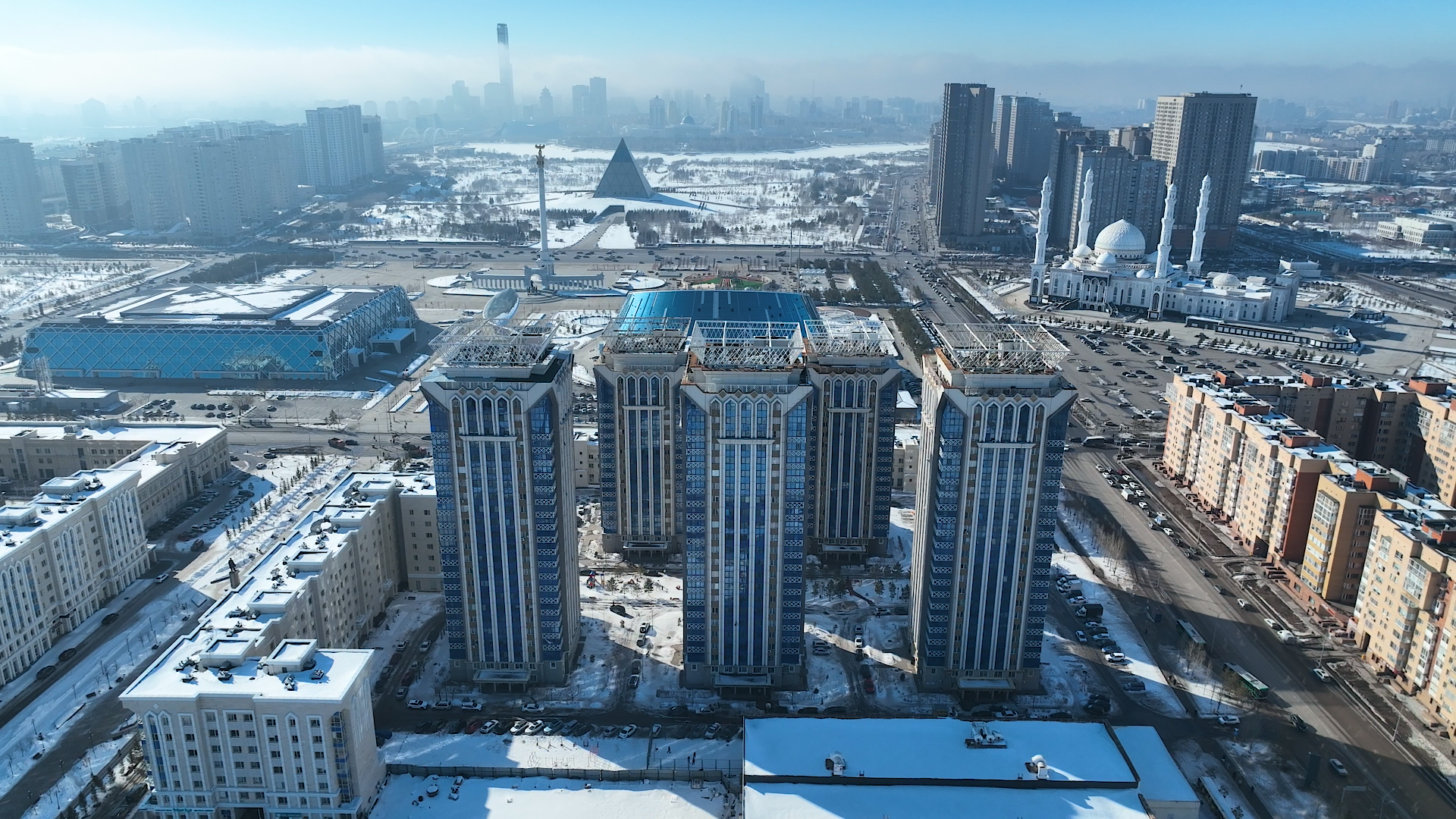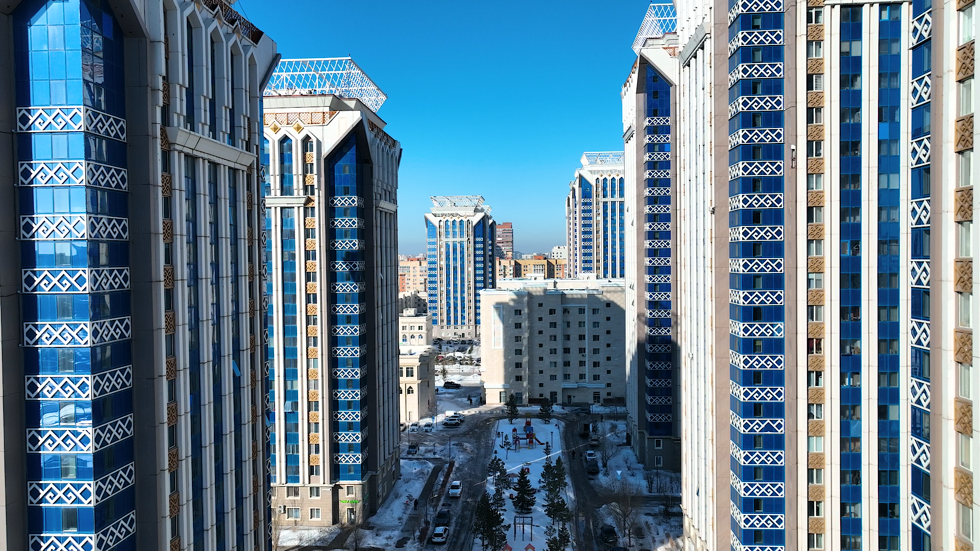 Дворец Независимости, а за ним ЖК. Фото: ©️ Tengrinews.kz / Роман Павлов