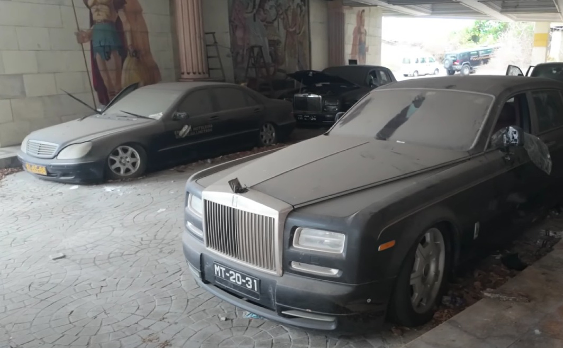 Рядом с Rolls-Royce ютубер заметил старый Mercedes-Benz S-Class, полностью покрытый грязью. На парковке позади здания сохранилось еще больше машин — по меньшей мере дюжина Toyota Alphard, предположительно, использовавшихся как трансфер для гостей.
