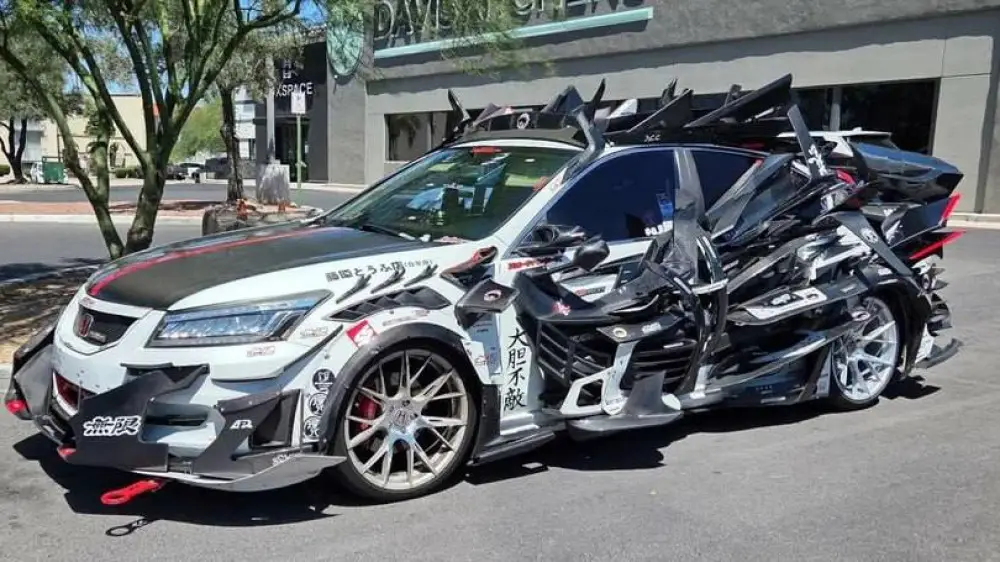 В Аризоне заметили необычный Honda Accord с огромным количеством карбоновых крыльев, плавников и сплиттеров, передает Tengri Auto.