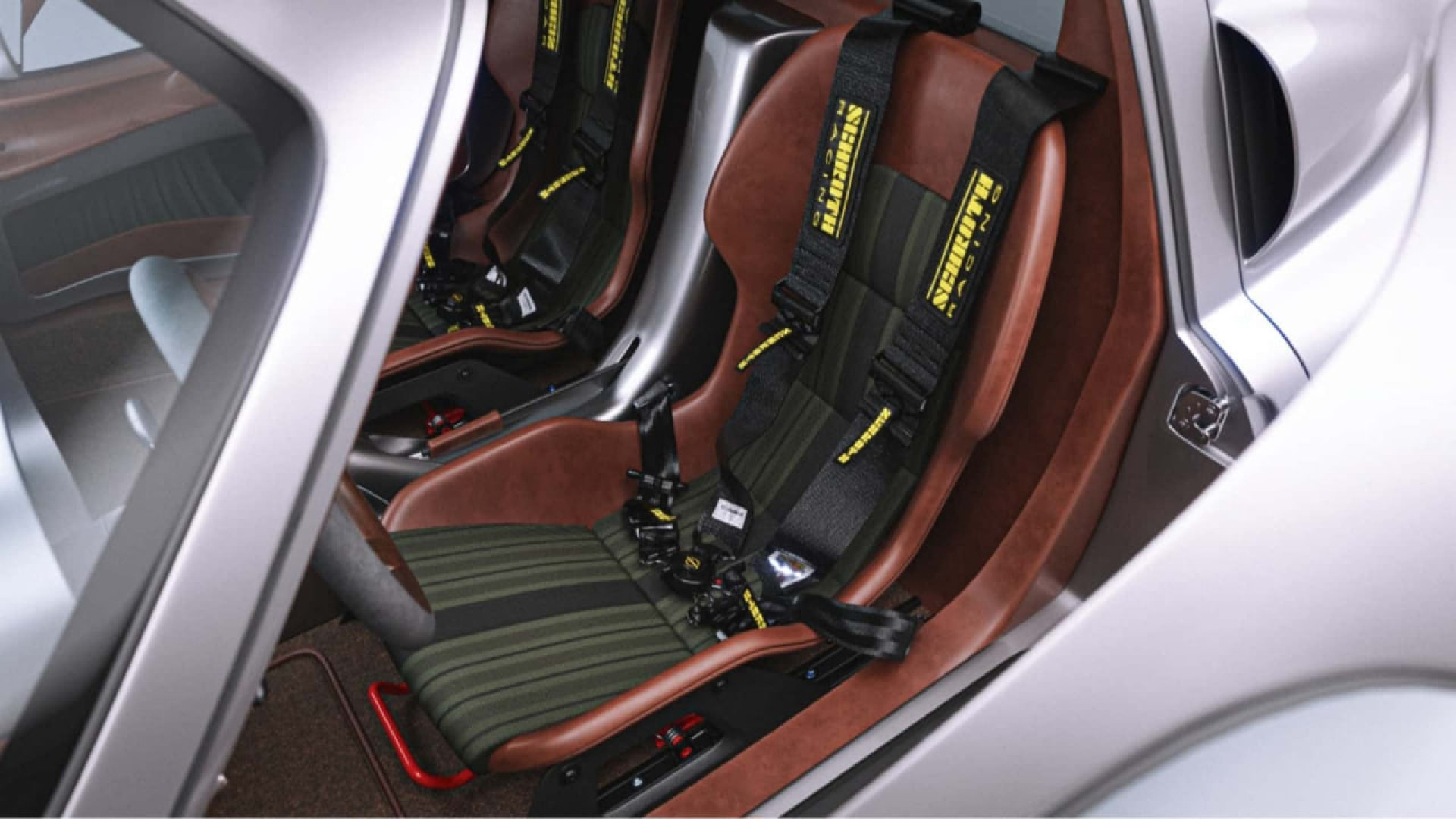 В интерьере обещан премиальный ретро-стиль с использованием титана и кожи растительного дубления. Предполагается сотрудничество с известным часовщиком для создания эксклюзивных циферблатов и хронографа, который будет включен в комплект каждого автомобиля.