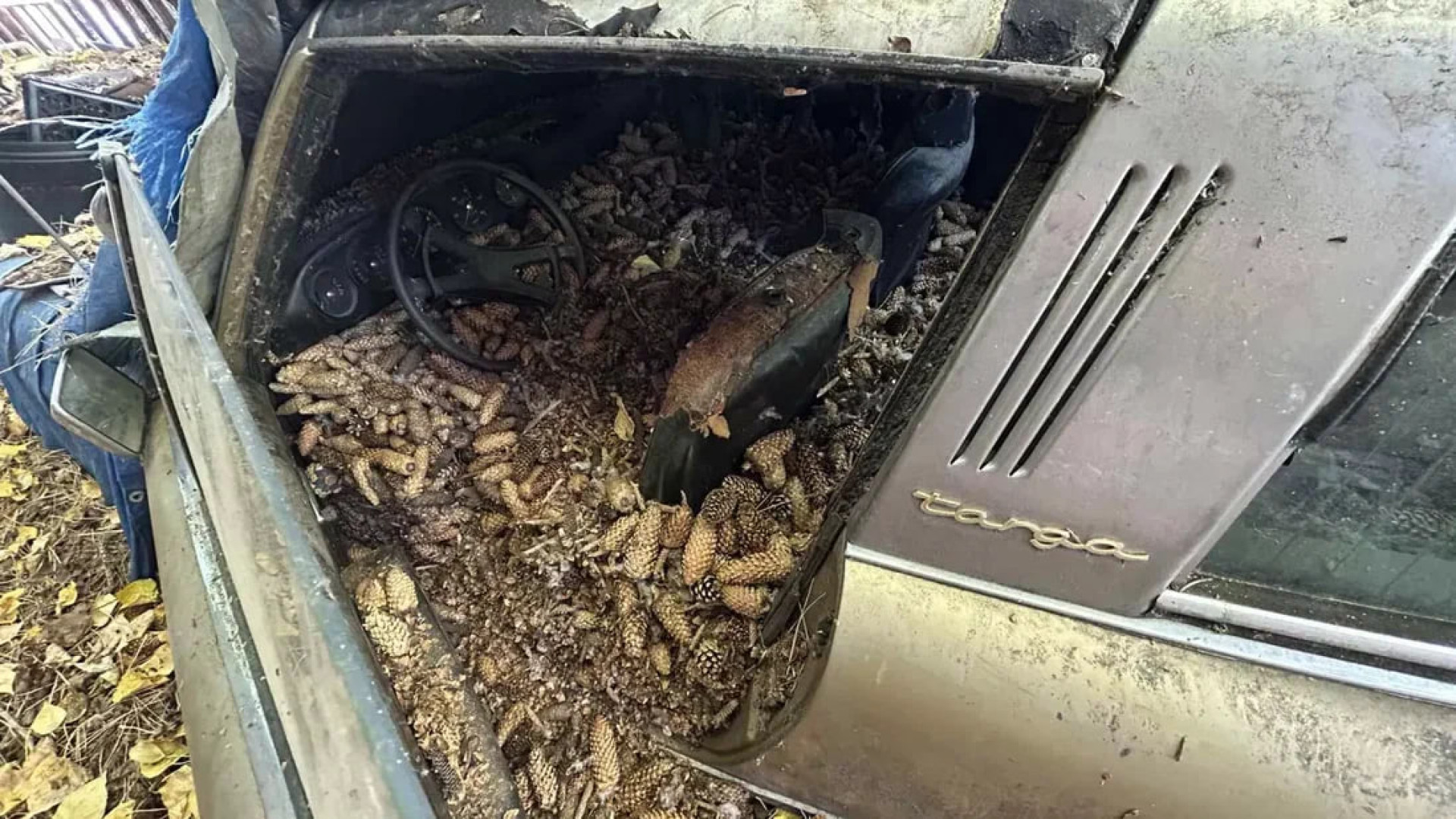 Почему уникальный Porsche 911 Targa 1970 года три десятилетия ржавел под открытым небом — загадка. За это время он почти ушел в землю, а его интерьер был похоронен под толстым слоем сосновых шишек, натасканных белками.