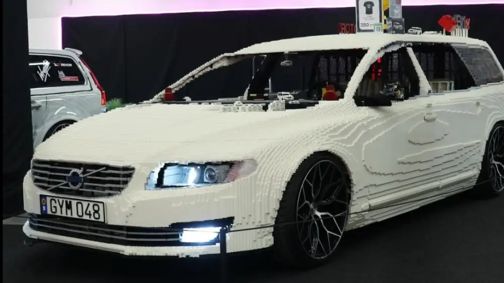 В отличие от обычных статичных моделей из конструктора, этот Volvo V70 способен передвигаться благодаря небольшому электромотору. Однако пройти технические испытания в Швеции ему не удалось - причиной стало отсутствие тормозов.