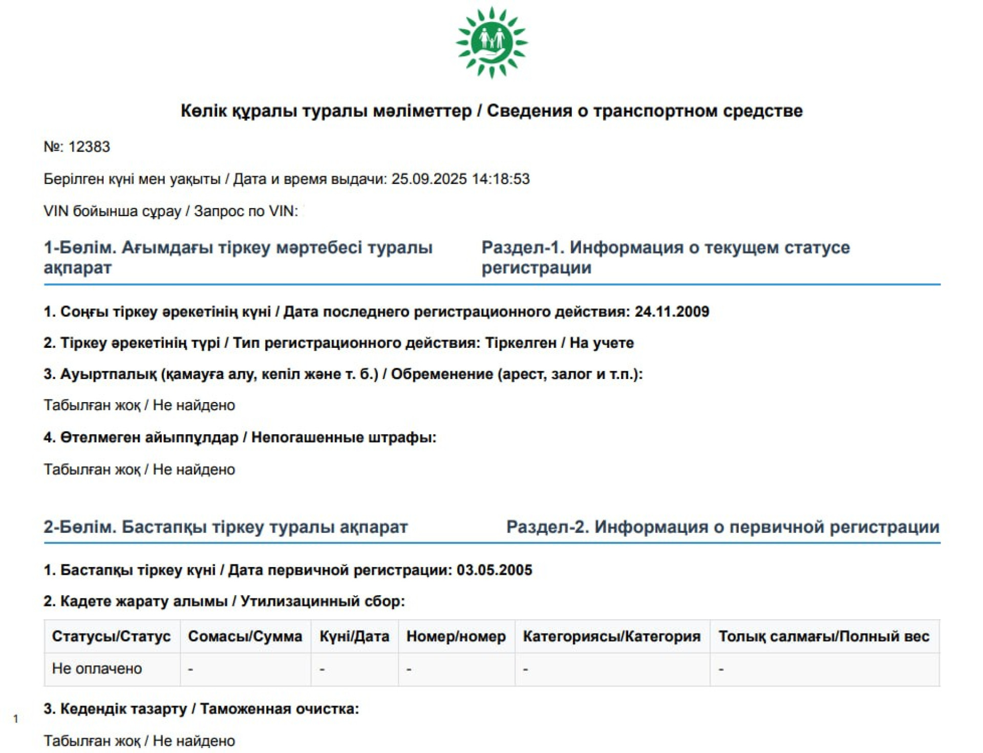 В действительности отчет оказался довольно скудным. Вы можете узнать статус текущей регистрации, дату первичной регистрации, задолженность по штрафам и количество владельцев.