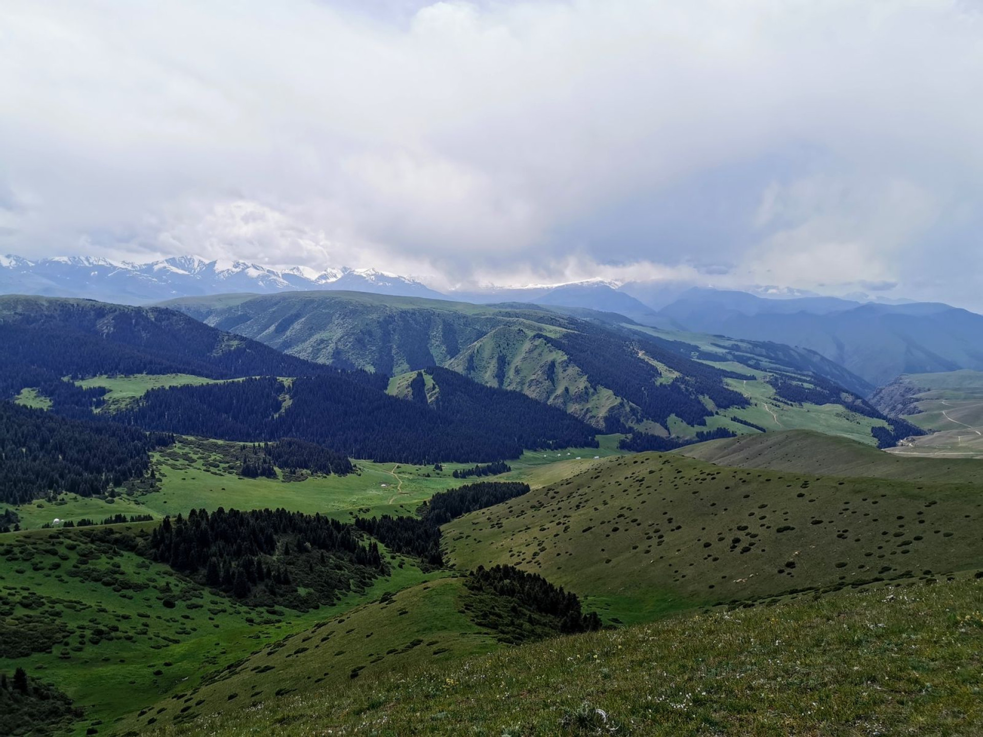 Зато вид, который открывается с последнего перевала, полностью оправдывает путь. Внизу — равнина, дальше — водохранилище, а вокруг — горы.
