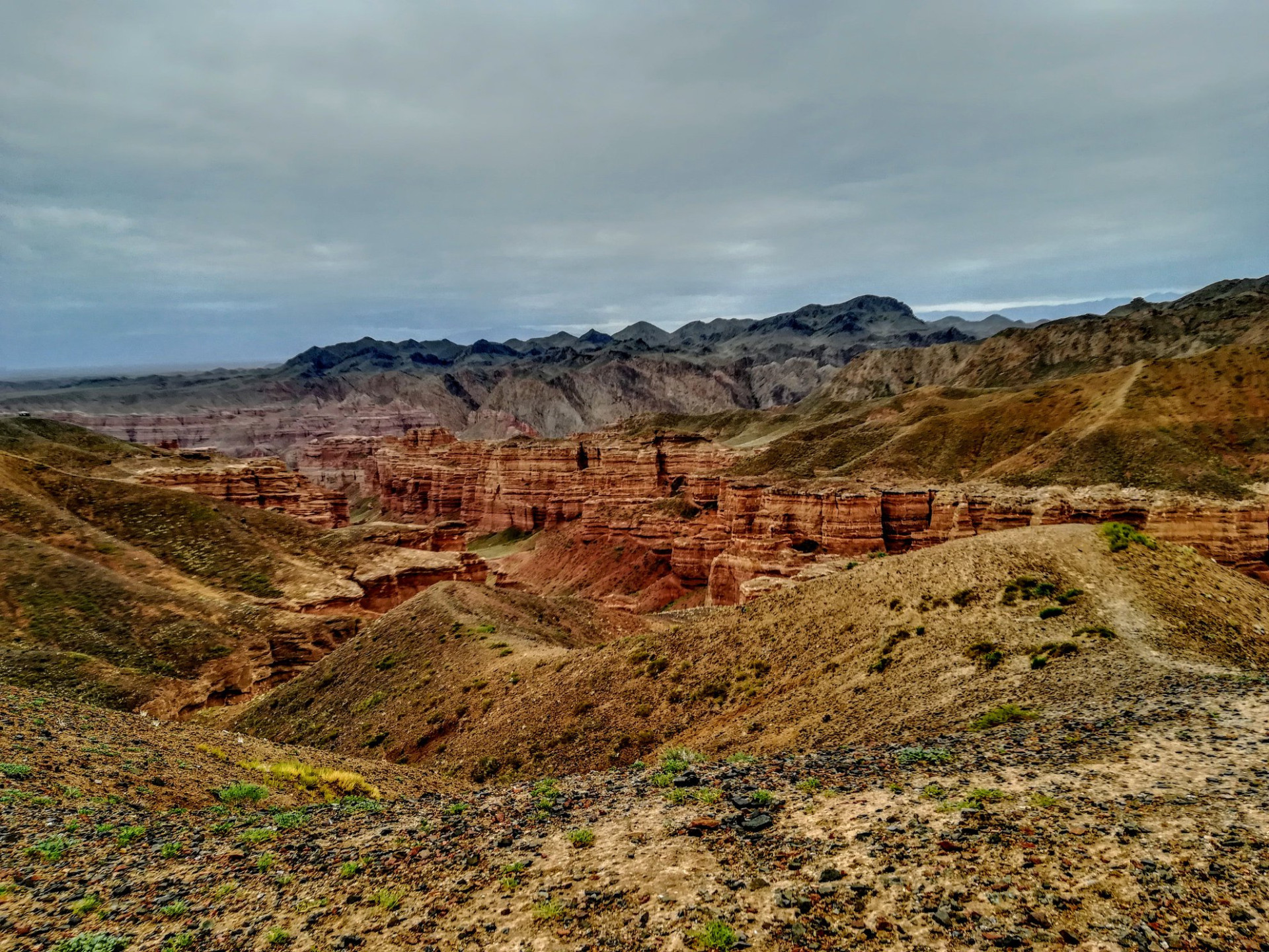 До Чарынского каньона через горы — это совсем другой опыт: не самый быстрый, но точно один из самых запоминающихся. Около 200 километров по перевалам и пересечённой местности превращаются в полноценный маршрут на 8–10 часов — с остановками, видами и возможностью перевести дух.