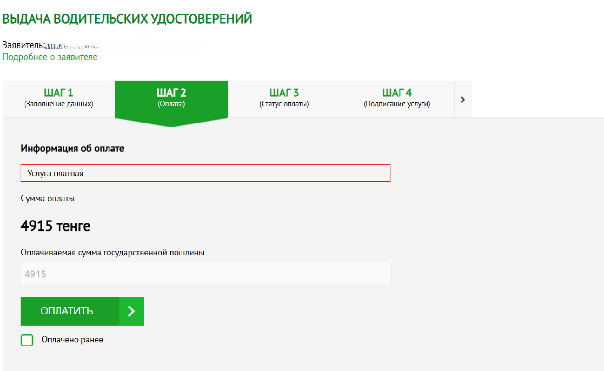 После заполнения всех данных и проверки система перенаправит вас на оплату слуги. Стоимость замены прав составляет 4 915 тенге.