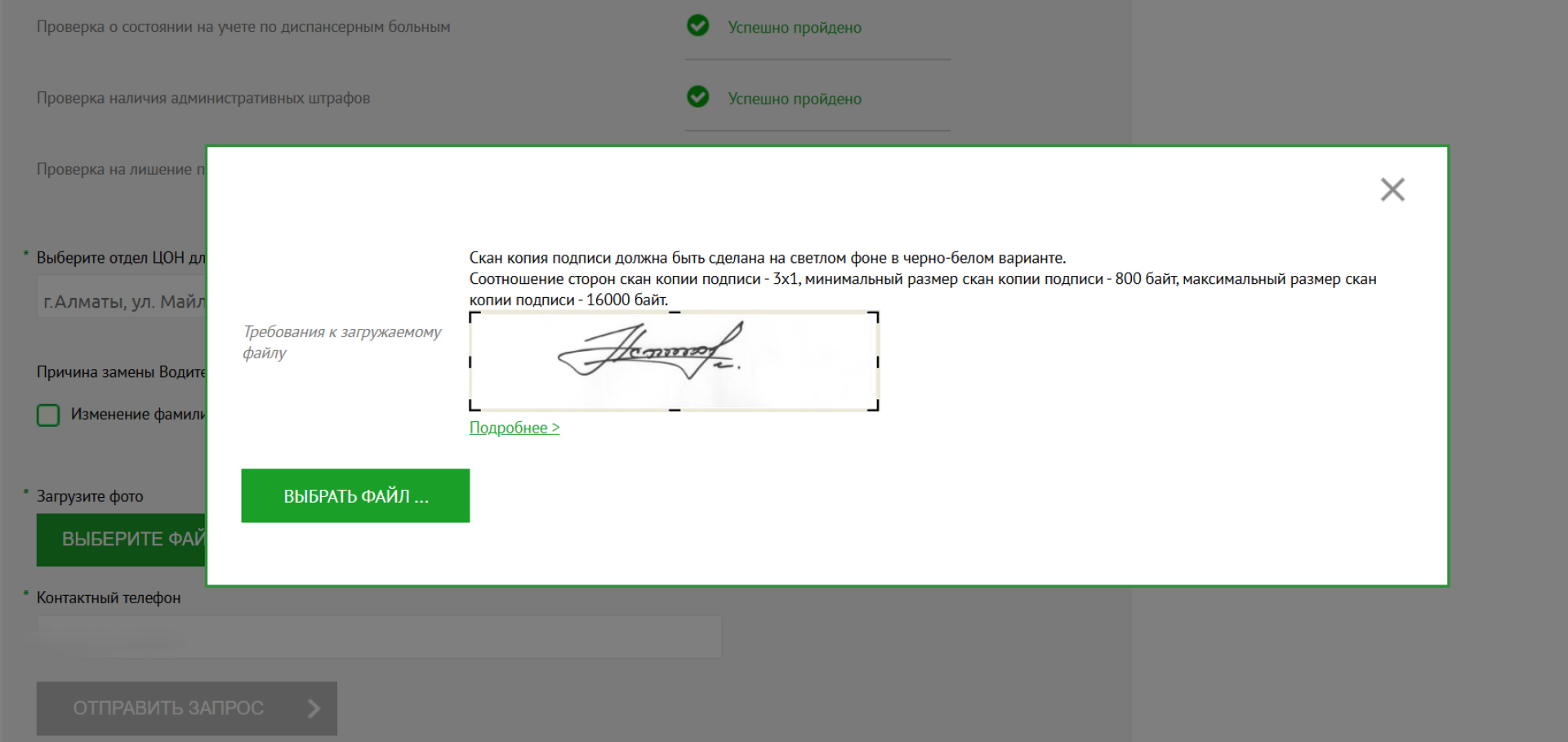 Также потребуется загрузка фотографии и подписи.