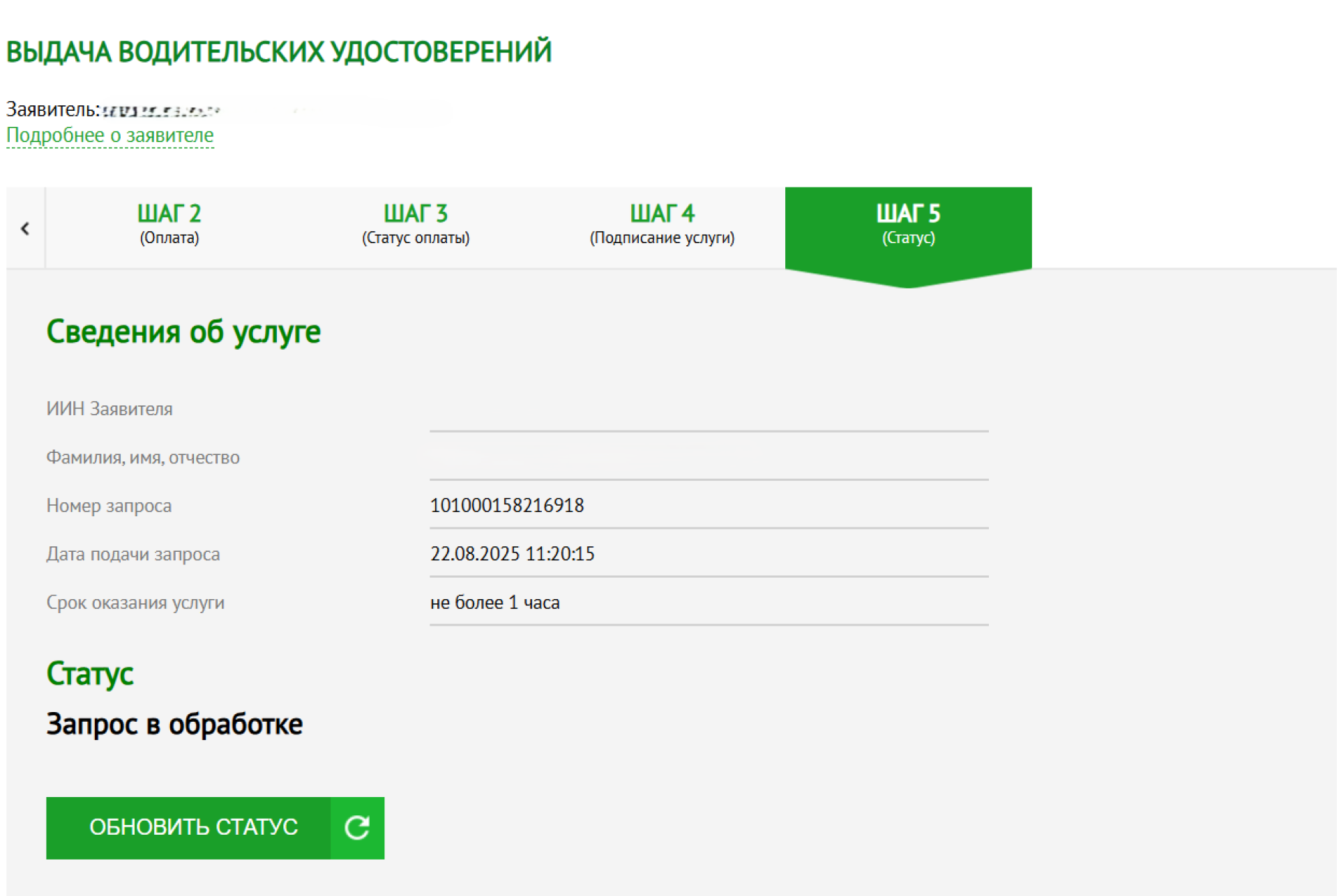 А затем система перенаправит вас на страницу "статуса услуги", на которой вы сможете посмотреть, на какой стадии обработки ваша заявка и сколько времени займет замена документа.
