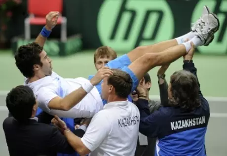 Сборная Казахстана по теннису впервые в истории пробилась в Мировую группу Кубка Дэвиса, сообщается на официальном сайте соревнований. Андрей Голубев и Михаил Кукушкин вышли в четвертьфинал. Они обыграли чешских теннисистов Яна Хайека и Томаша Бердыха со счетом 3:2. Победное очко команде принес Кукушкин, обыгравший Хайека со счетом 6:4, 6:7 (4:7), 7:6 (10:8), 6:0. В 1/4 Казахстан сыграет с Аргентиной.