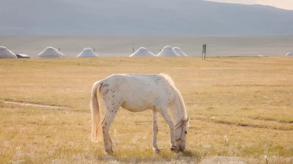 Сон Кель можно сравнить с нашим Туз Колем, но он выигрывает в самом маршруте к нему, к подъезду. Я советую всем его посетить. Озеро, когда стоишь рядом, успокаивает. Вокруг пасутся лошади. Решил их запечатлеть: неплохие кадры вышли.