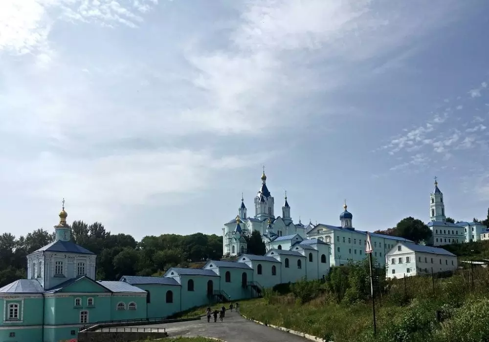После реставрации строения монастыря, выкрашенные в небесно-голубой цвет, смотрятся потрясающе. Не так давно в центре обители воздвигли памятник Серафиму Саровскому, уроженцу города Курска. Исцелившись в десятилетнем возрасте с помощью чудодейственной иконы "Знамение" от тяжелого недуга, преподобный неоднократно здесь бывал. Крутые каменные сходы ведут от верхней монастырской площади к нижней церкви. Они удивительно стройно вписываются в общий архитектурный ансамбль, создавая максимальные удобства. Со всех ступенек и площадок виден главный собор и прекрасно слышно совершаемое в нем богослужение. Раскинувшись на высоком живописном берегу Тускари среди громадного парка, он уже издалека манит позолоченными главами храмов и колокольни.