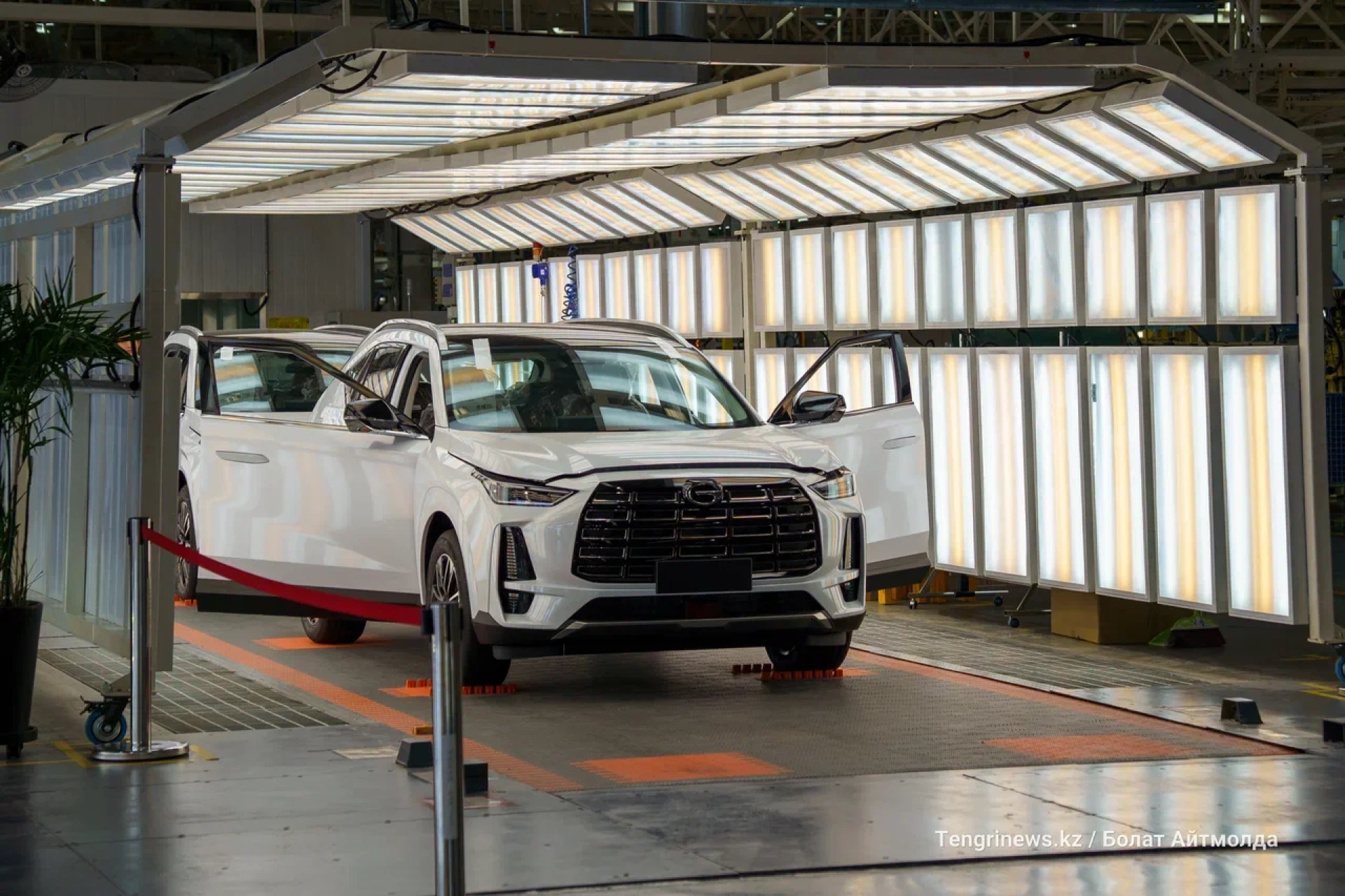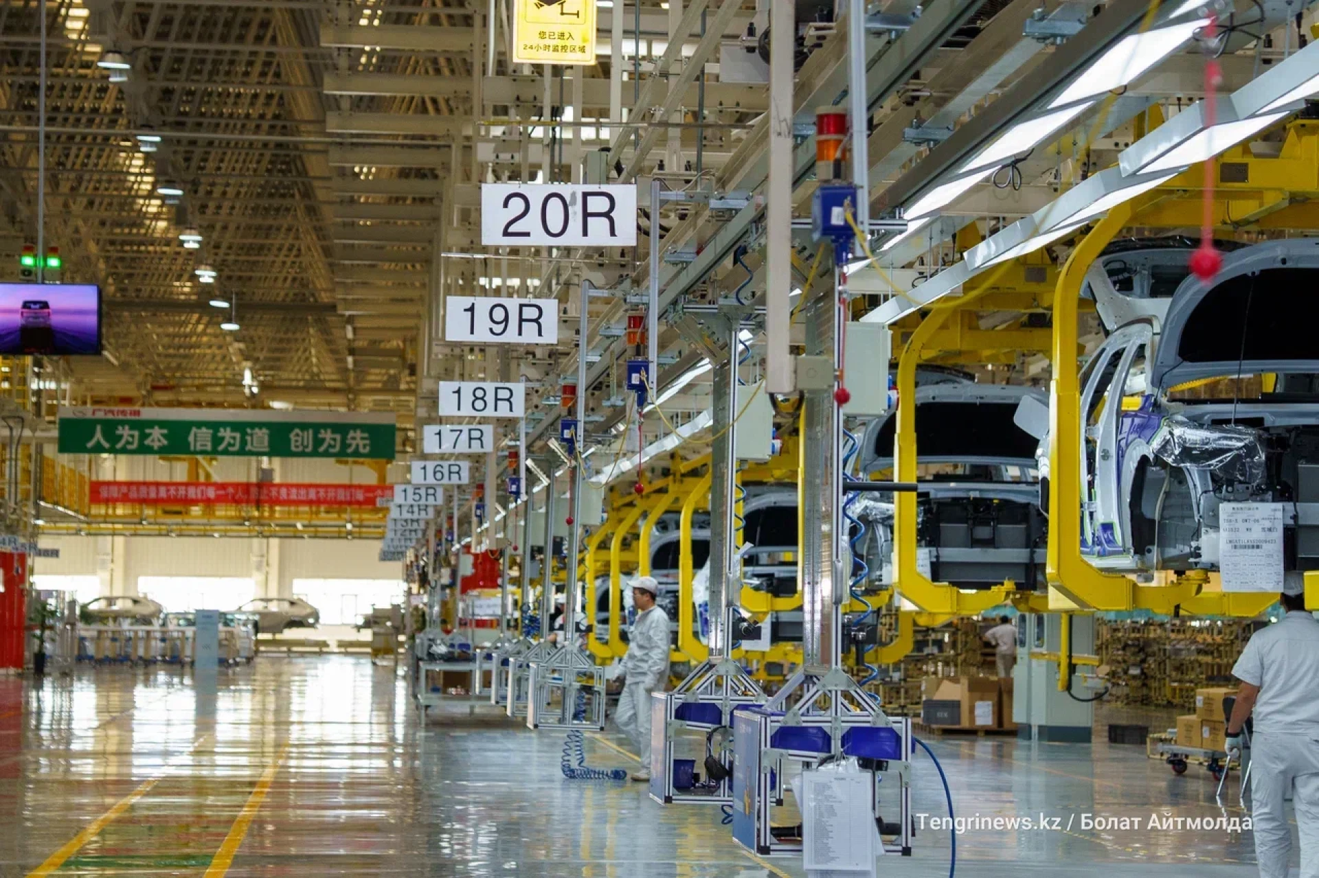 Технологичность ощущается не только в управлении городом, но и на производстве. На заводе GAC Motor журналистам показали цеха, где на сборочных линиях трудятся роботы. При этом — в полной тишине, они абсолютно бесшумные.