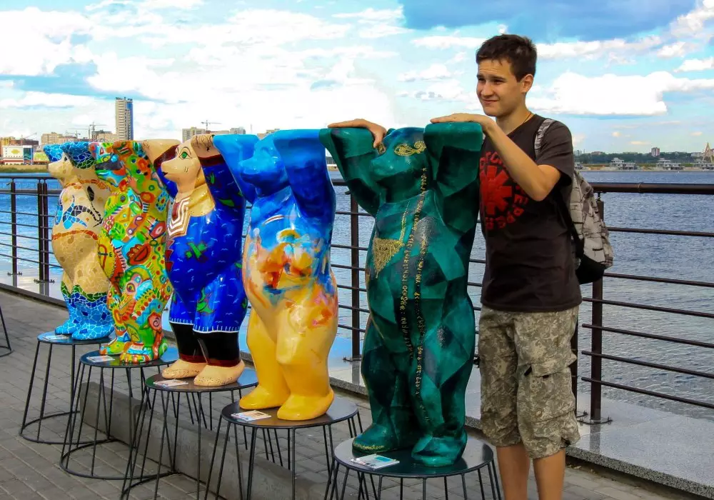 Казахстанский мишка представлен на международной художественной выставке The Minis United Buddy Bears в Казани, сообщает корреспондент Tengrinews.kz.