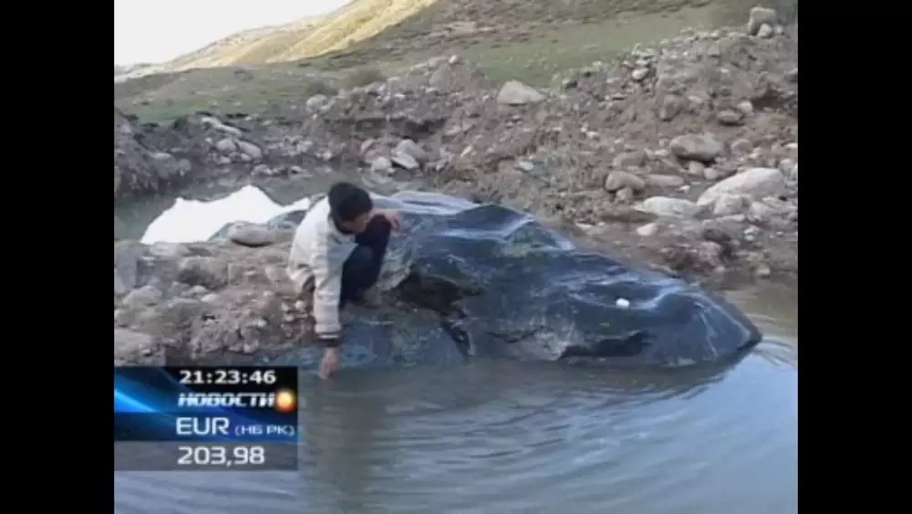 Чтобы отвадить многочисленных охотников за драгоценностями, сельчане спрятали гигантскую глыбу под водой. "Мы специально пустили реку на этот камень. А то были случаи, когда приходили и отламывали куски", - рассказывает житель поселка Айбек Тотубаев.